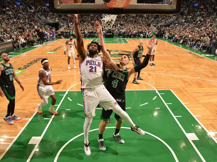 從第二節開始,恩比德徹底接管比賽。他后三節17投11中,狂砍31分,幾乎以一己之力擊穿了凱爾特人的防線。全場比賽,他出戰38分55秒,交出23投12中、罰球10中9的成績單,高效轟下33分,并送出8次助攻。當他在低位吸引包夾后冷靜分球蜘蛛直播,或是在關鍵時刻用中距離懲罰對手時,你看到的是一個完全體的進攻大殺器。